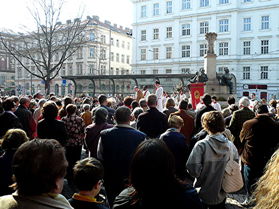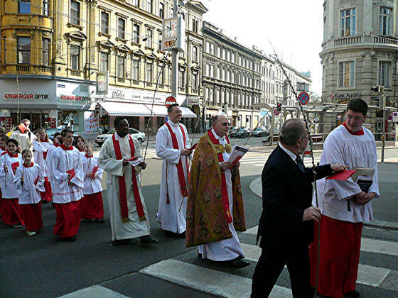 Die Messe feiernde Pfarrgemeinde von Hernals