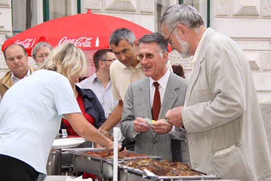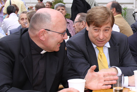Pfarrer Engelmann und Gemeinderat Kurt Stürzenbecher im angeregten Gespräch