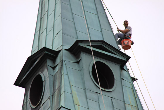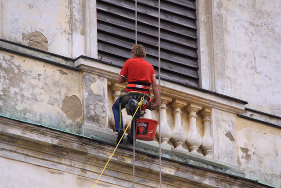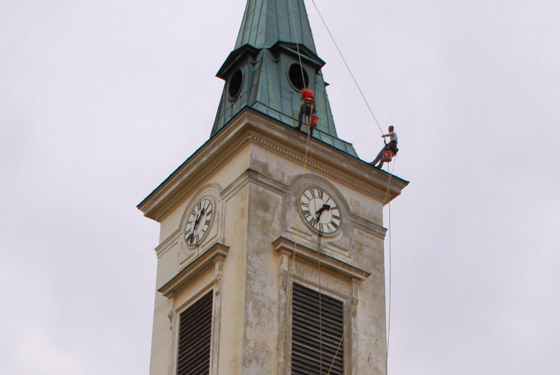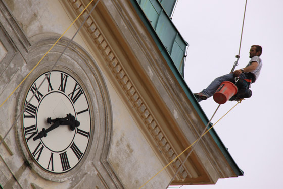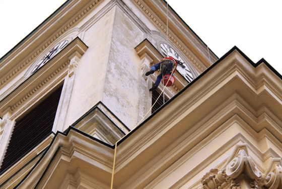 Die Sanierung der Turmfassade beginnt