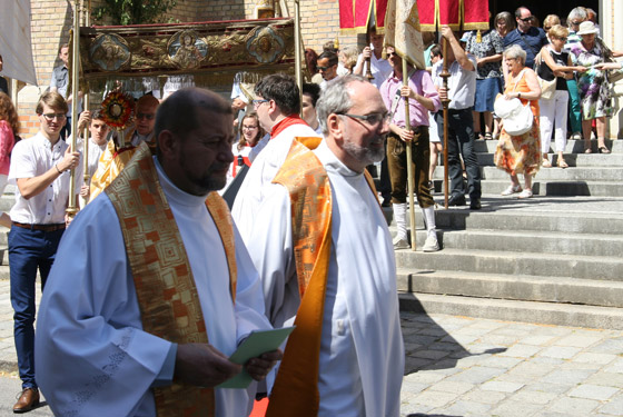 Teilstück trägt Pfarrer Wolfgang Kimmel aus Dornbach die Monstranz