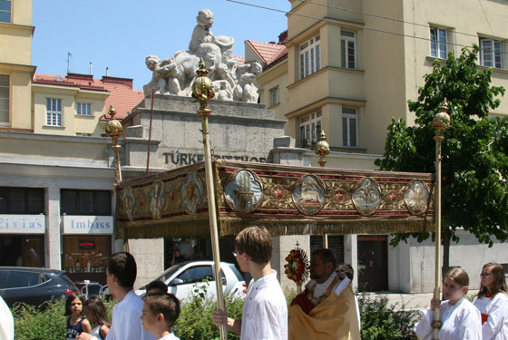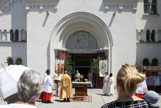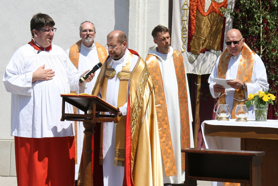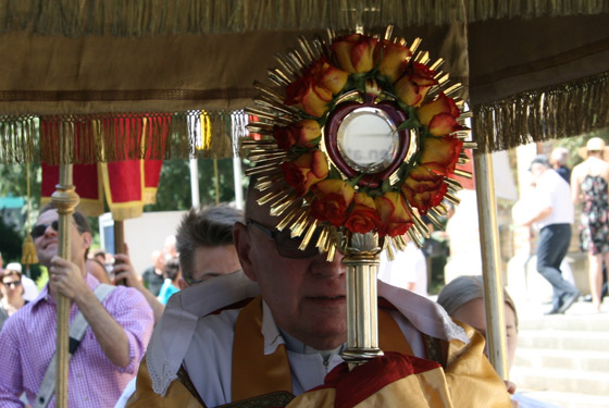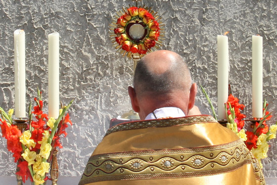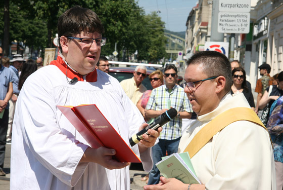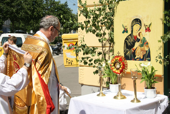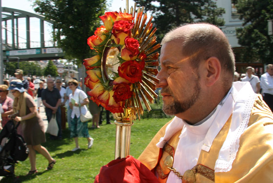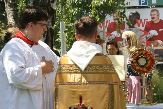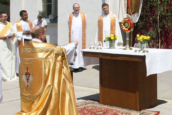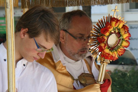 ersten Altar trägt Pfarrer Karl Engelmann (Kalvarienbergkirche) die Monstranz