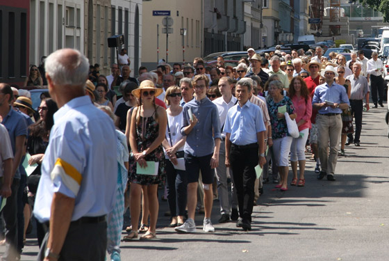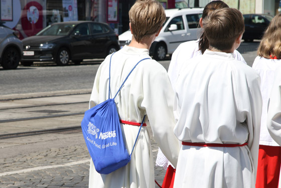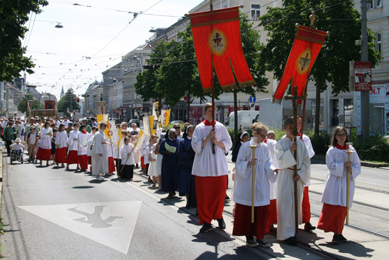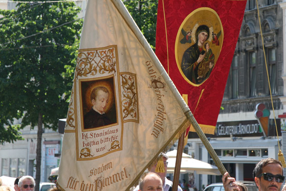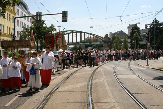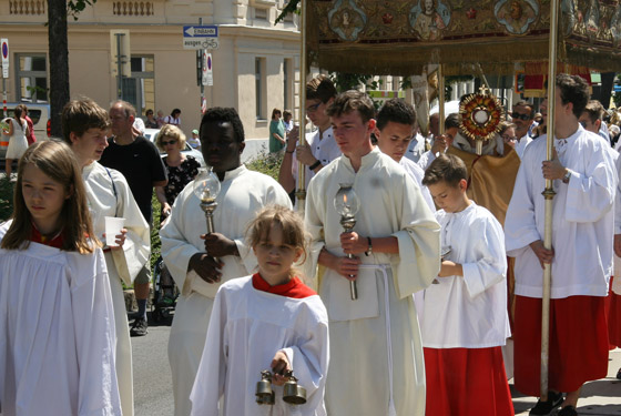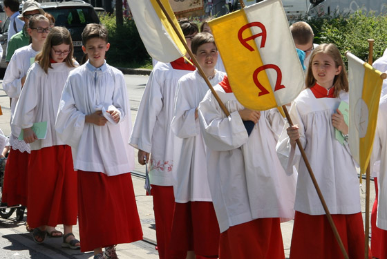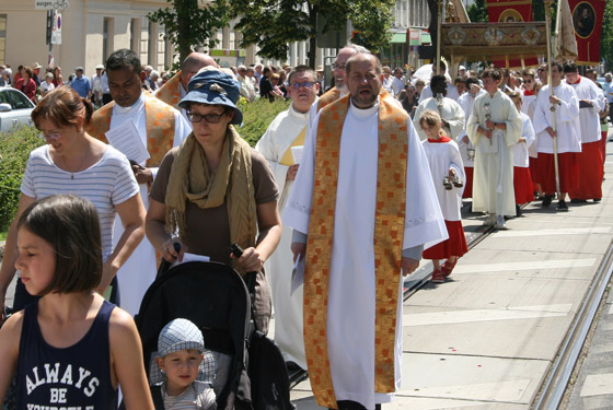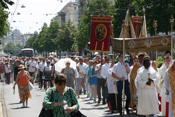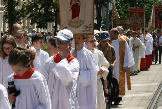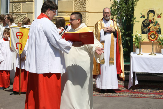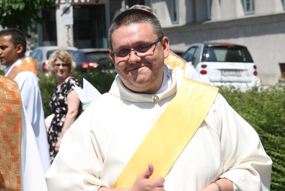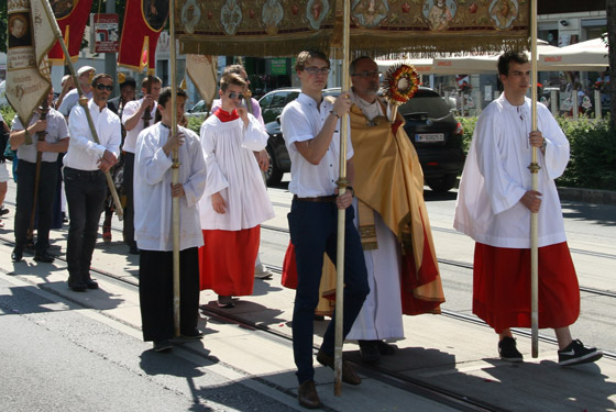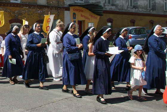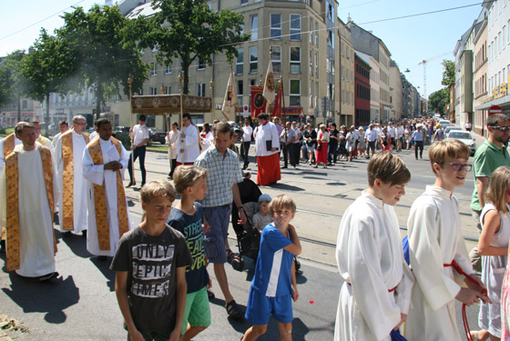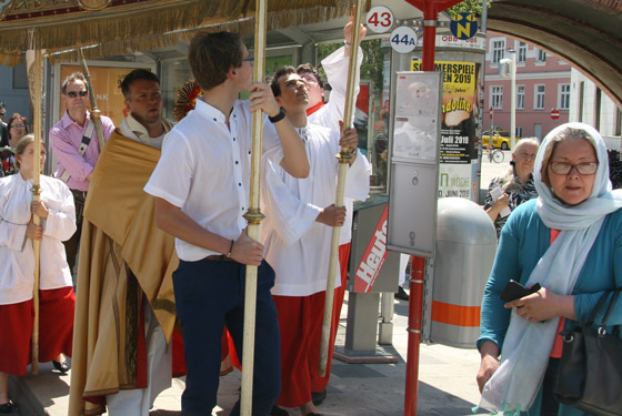 Abschnitt trägt P. Lorenz Voith, Pfarrer der Marienkirche, die Monstranz
