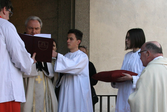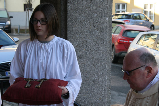symbolischen Übergabe von zwei Schlüsseln wird Karl Engelmann zum Pfarrer der